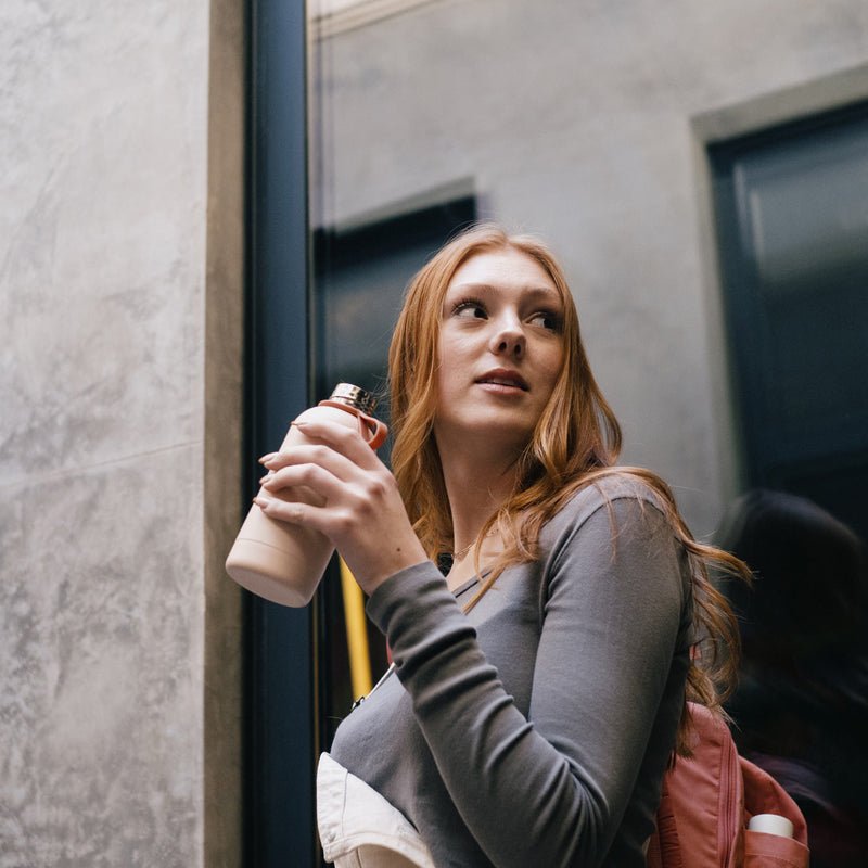 Our 12 oz premium reusable bottle in blush features a luxe, matte finish, and a durable, double-walled stainless steel design. It's vacuum-insulated to keep liquids cold for up to 24 hours and hot for up to 12 hours. Includes a custom silicone strap to carry or clip. Perfect for kids, or to drop in a purse or backpack.