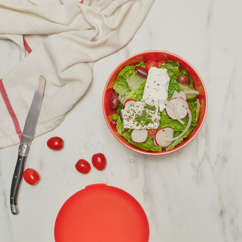 From table, to fridge, then off to work. Our 25 oz Store & Go container takes you full-circle. Features our signature certified bamboo fiber base and a 100% LEAK-PROOF, premium food-grade silicone lid. Good looking enough to serve up a saucy side or salad. Pop the lid on any left-overs and pack the same bowl for lunch the next day! While using, suction the lid on the bottom of the cup - it won't get lost in the mix, but it also doubles as a non-slip surface.