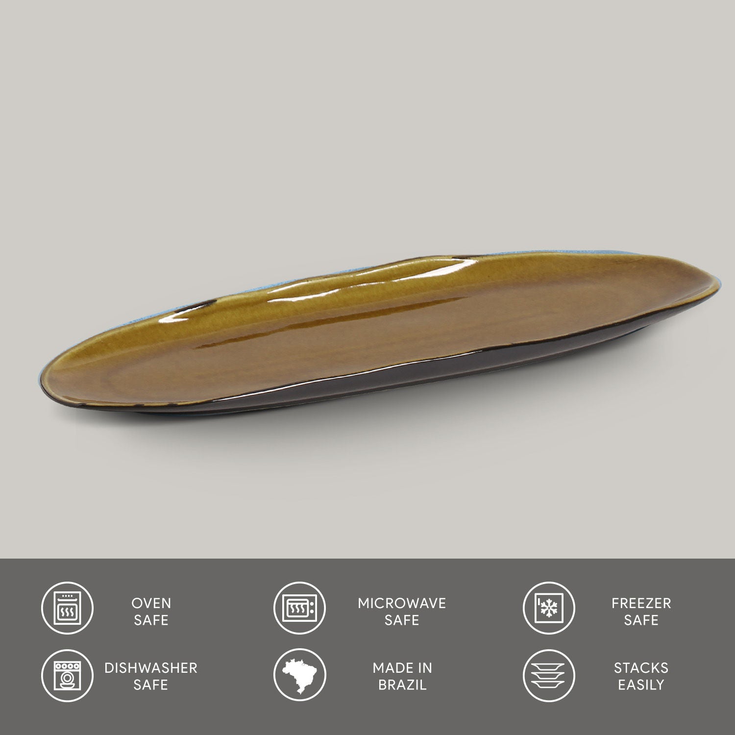 Porto Brasil AMBER SHALLOW OVAL PR LARGE ORGANIC STONEWARE dia. 14.17x5.12" SKU: '1421477101
